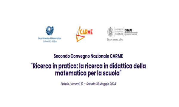 Il Dipartimento di Matematica e Informatica “Ulisse Dini” dell’Università degli studi di Firenze, il Dipartimento di Matematica dell’Università di Pisa e il CARME (Center for Advanced Research in Mathematics Education) di Pistoia, organizzano la seconda edizione del convegno “Ricerca in pratica: la ricerca in didattica della matematica per la scuola”, iniziativa di formazione e sviluppo professionale rivolta a insegnanti ed educatori di tutti i livelli scolari, aperta anche a studenti universitari, dottorandi, giovani ricercatori, e a tutti gli interessati.